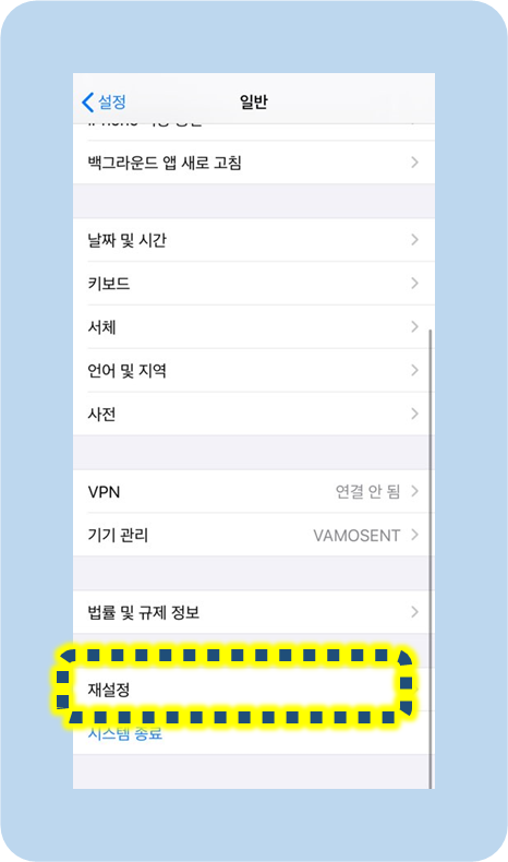 위 많은 메뉴들 중에 재설정을 클릭해주세요.