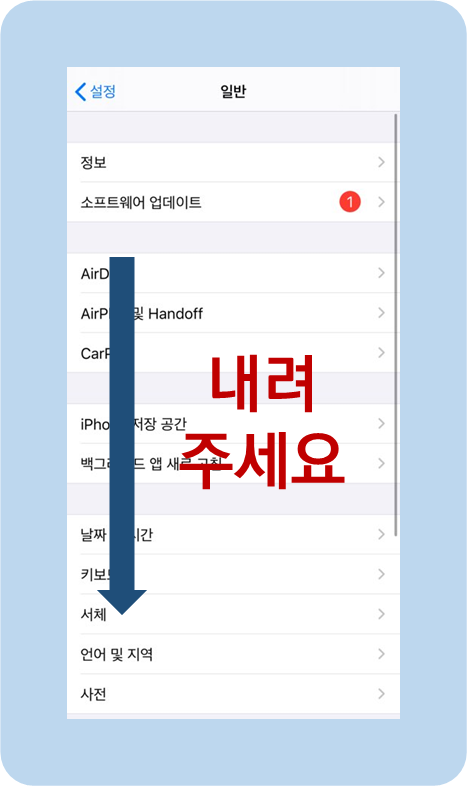 설정으로 들어오셨으면 화면을 밑으로 살짝 내려주세요~
