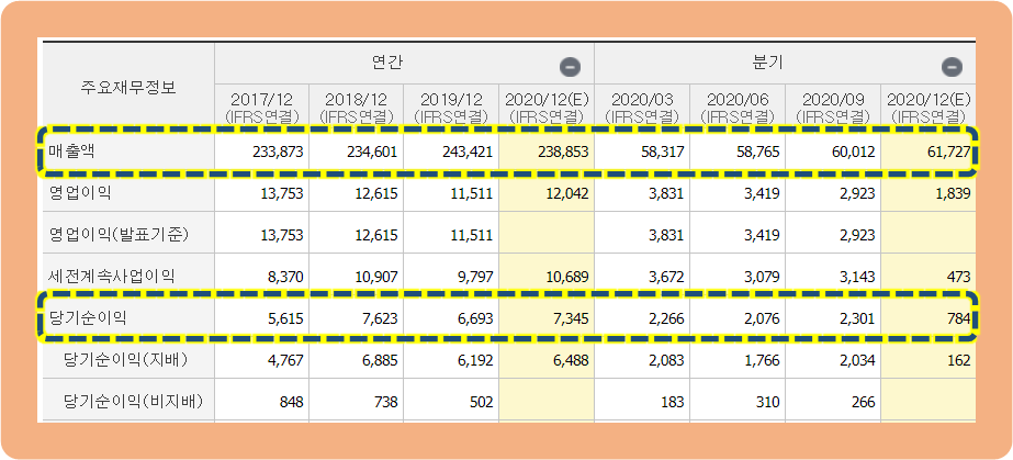 2020년 기준으로 24조원의 연간 매출액과 약 7,300억원의 연간 순이익을 보여줬는데, 주요 분야인 유무선통신이 아무래도 삶의 기본적인 부분으로 자리잡고 있기 때문에 코로나의 영향은 크게 받지 않은 모습입니다.