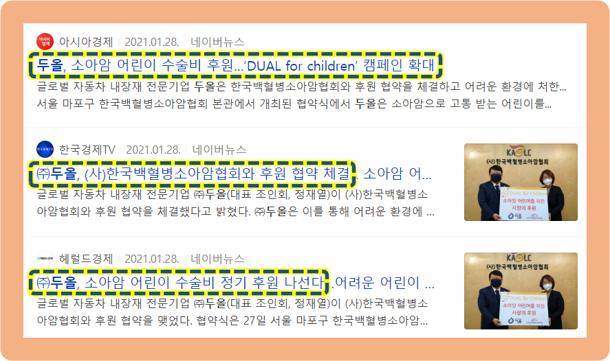 이 뿐만 아니라 두올은 이미 2020년도에도 동방사회복지회와 MOU를 맺었고, 임직원과 합심해서 기아, 학대, 친권포기 등의 이유들로 기관의 보호를 받고 있는 영유아의 의료비를 지원하는 사업을 시작한 바 있는데요.
