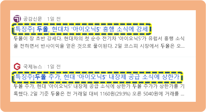 앞으로 아이오닉5의 시장 방향에 따라 두올의 주가도 수혜를 받게 된 것이죠.