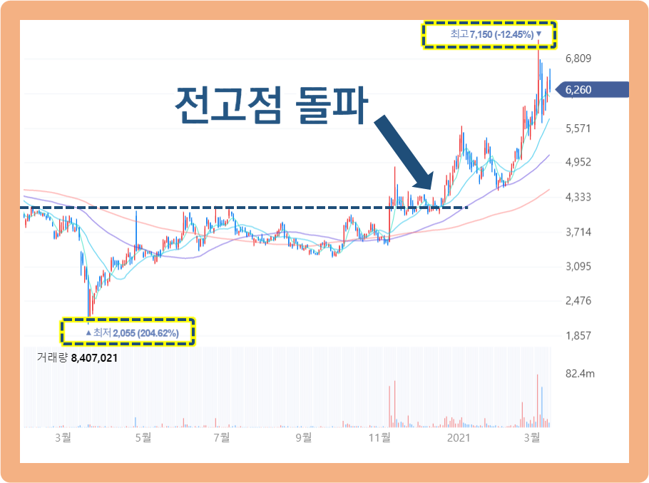 그리고 2020년 12월, 주가는 갑자기 급등하기 시작하면서 2021년 3월 5일에는 최고 7,150원까지 상승한 상황이구요.
