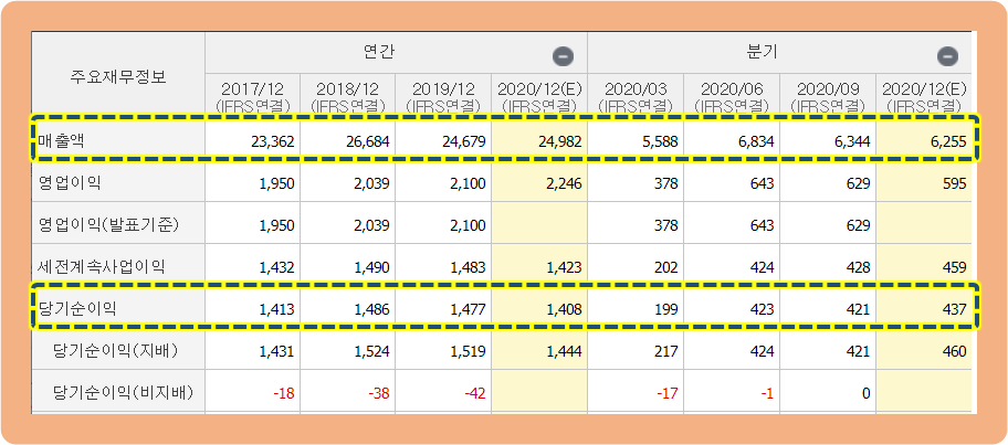 매출액과 순이익 모두 꾸준히 안정적인 모습을 보여주고 있는 상황입니다.