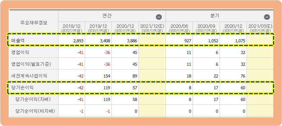 다음 해인 2019년 기준으로 +119억원을 기록하면서 흑자 전환에 성공하였구요. 2020년에도 +57억원을 기록하면서 2년 연속 흑자를 기록했습니다.
