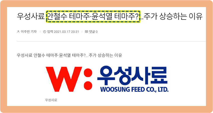 그리고 최근 우성사료가 안철수, 윤석열 테마주로 투자자분들의 관심을 받고 있는데요.