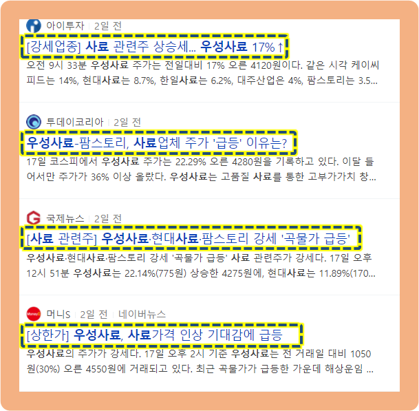 2021년 3월 17일, 우성사료를 비롯해서 사료 관련주들이 일제히 상승했었는데요.