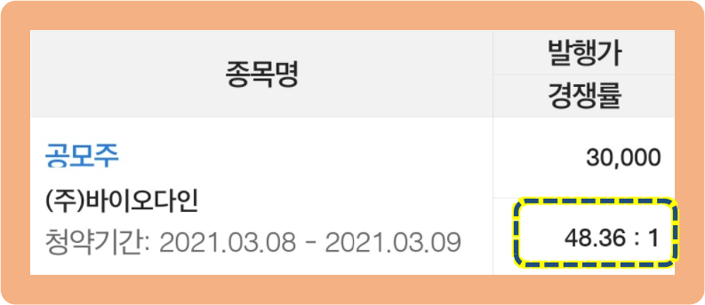 그리고 이후 바이오다인은 2021년 3월 8일 ~ 9일 이틀간 일반 공모 청약이 진행됐었는데요.