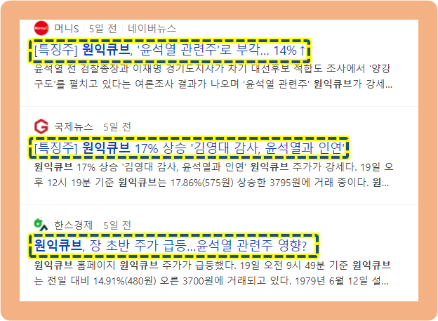 원익큐브 주가, 윤석열 관련주 수혜 상승