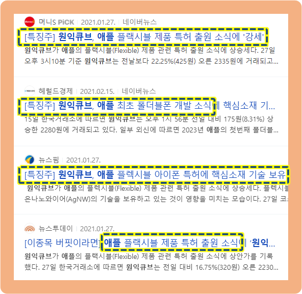 2021년 1월부터 원익큐브는 애플의 플랙시블 제품과 관련된 특허 출원 소식이 있었는데요.