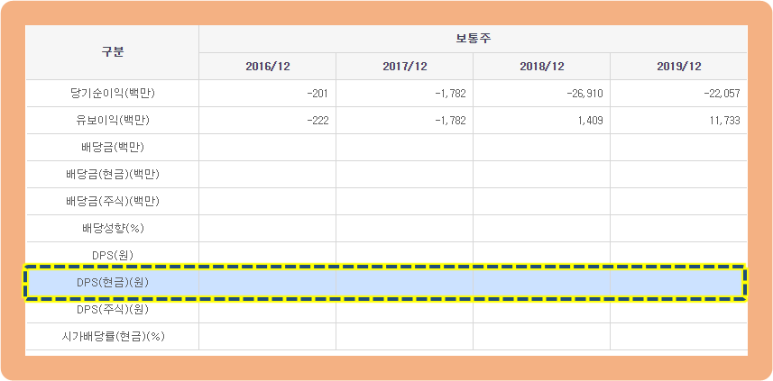 이 기업은 주식을 보유하고 계신 주주분들에게 배당금을 지급해주지 않고 있습니다.