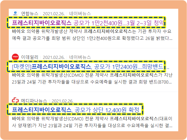 프레스티지바이오로직스가 코스닥에 상장 되기 전인 2021년 2월 23일~24일 이틀간 기관투자자를 대상으로 수요예측을 진행했었는데요.