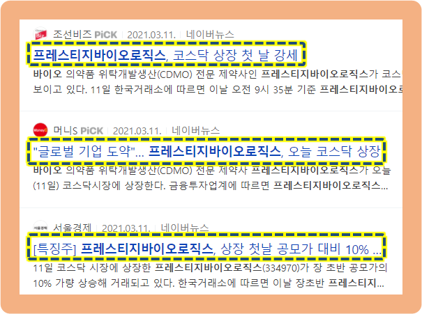 그리고 2021년 3월 11일, 프레스티지바이오로직스가 코스닥 시장에 상장되었습니다.