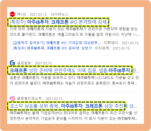 이미 2020년도부터 크래프톤 IPO 소식으로 아주IB투자가 수혜를 여러번 봤었는데, 아직도 열기가 끊이지 않고 있네요.