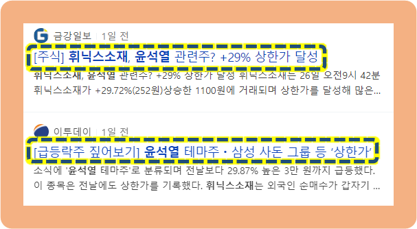 또한, 휘닉스 소재는 삼성전자 부회장인 이재용 관련주로도 알려져 있으며, 최근에는 윤석열 관련주로도 투자자분들에게 관심을 받고 있는 종목이구요.