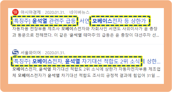 모베이스전자의 지분을 약 52% 보유하고 있는 최대주주 모회사인 모베이스의 사외이사가 서울대 법대 출신인데요. 이 사외이사가 대검찰청 차장 검사를 역임했었다는 이유로 인해 윤석열 전 검찰총장 테마주로 엮여있는 것입니다.