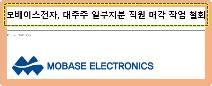 그리고 2020년도 상반기에 모베이스전자가 코로나 장기화 등으로 인해서, 대주주의 지분 일부분을 임직원들에게 매각하는 작업을 진행하고 있었는데요.