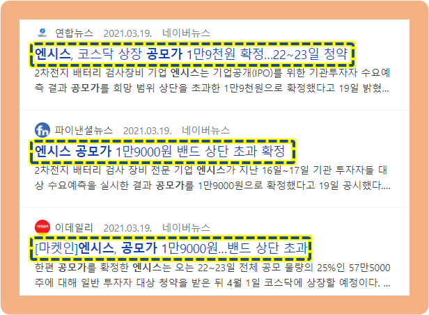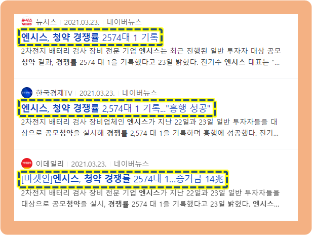 코스닥에 상장전이였던 2021년 3월 19일, 엔시스는 기업공개를 위한 기관투자자 수요예측 결과가 발표되었는데요.