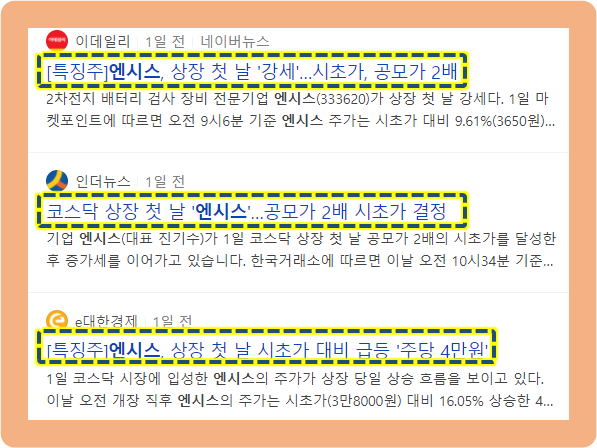 안녕하세요. 이번에는 2021년 4월 1일 코스닥 시장에 상장하게 된 엔시스 주가에 대해 보도록 하겠습니다.