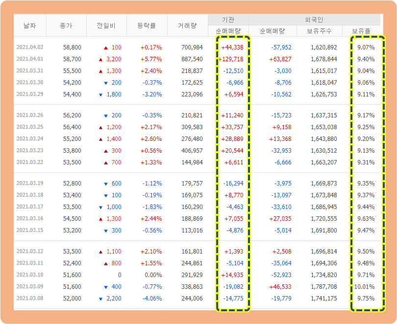 지난 한 달 동안, 기관투자자와 외국인의 주식 거래 동향을 보겠습니다.