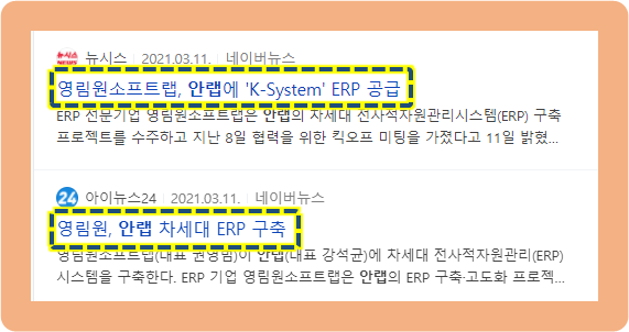 2021년 3월 8일에 ERP 전문업체인 영림원소프트랩이 안랩의 차세대 전사적자원관리시스템(ERP) 구축 프로젝트를 수주하였고, 이와 관련된 협력을 위한 미팅을 가졌다고 3월 11일날 발표했습니다.