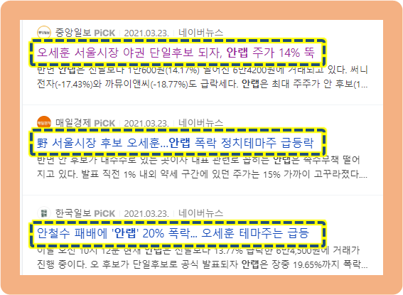 안랩 입장에서는, 최근 안철수후보가 오세훈 후보에게 단일후보 경쟁에서 패배한 점은 다소 아쉬운 상황인데요.