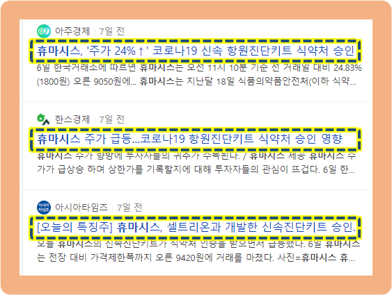 휴마시스, 신속 항원진다키트 식약처 승인 소식