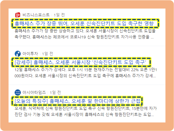 휴마시스 주가, 오세훈 신속진단키트 도입 촉구 수혜
