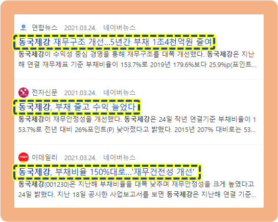이 소식은 최근 재무건전성 개선 관련 내용인데요. 동국제강은 장세욱 최고경영자가 취임한 2015년도 이후 수익성을 중심심으로 경영을 지속하면서 재무건전성을 강화하고 있죠.