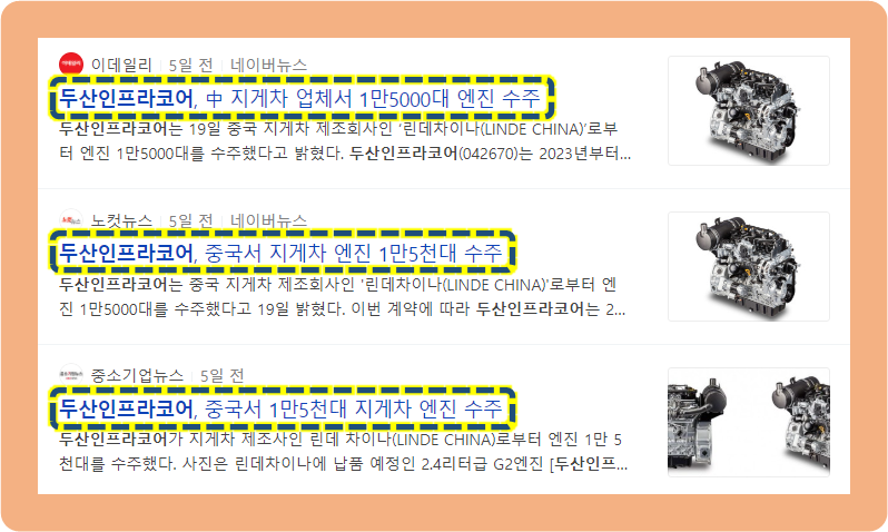 2021년 4월 19일, 두산인프라코어가 중국 지게차 제조업체인 린데차이나로부터 엔진 15,000대를 수주했다는 소식이 발표되었습니다.