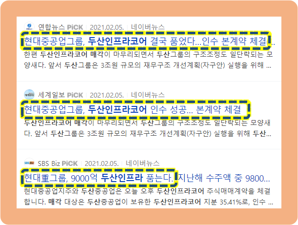 2021년 2월, 현대중공업이 두산인프라코어 인수하게 되었습니다.
