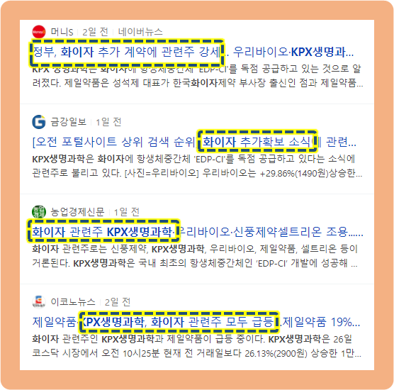 이 소식으로 인해, 당시 화이주 관련주로 분류되는 종목들이 강세를 보였습니다.