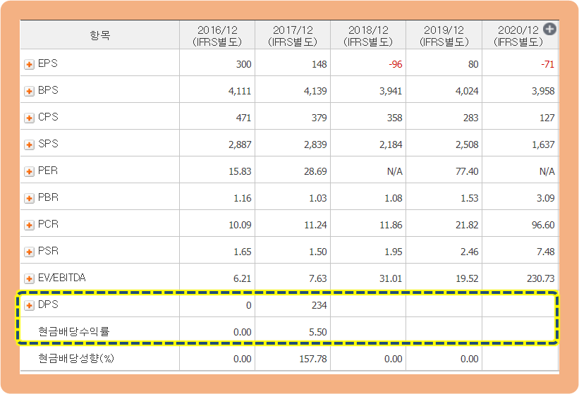 2017년도까지는 주식을 갖고 계신 주주분들에게 배당금을 지급했는데요. 2018년 ~ 2020년 3년간은 주주분들에게 배당을 실시하지 않고 있는 모습입니다.