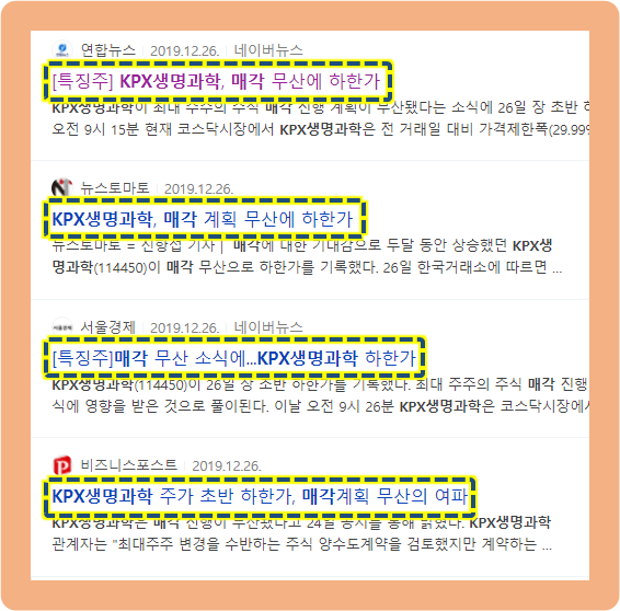 2019년도 KPX생명과학, 매각 무산 소식