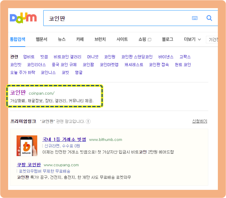 그리고 검색창에 "코인판"을 검색하시면 위에 보이시는 것처럼 사이트가 나오는데요.