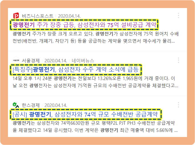 광명전기, 과거 삼성전자 약 75억원 규모 수주 소식