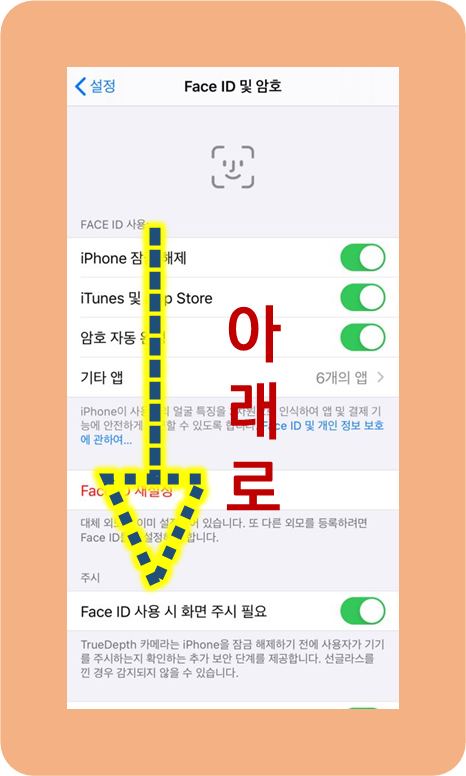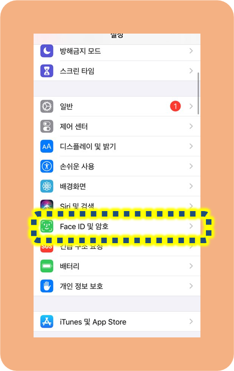 이번엔 Face ID 및 암호라는 곳으로 들어가주셔야 합니다.