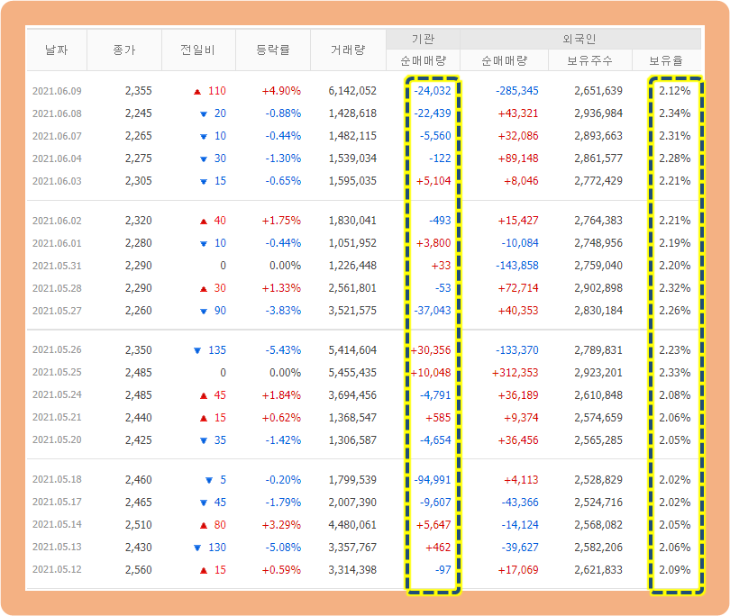 최근 기관 투자자 및 외인 거래 동향