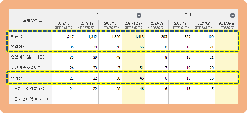 티플랙스의 2021년도 1분기 실적은 매출액 약 400억원, 영업이익 약 21억원, 순이익 약 15억원을 기록했는데요.