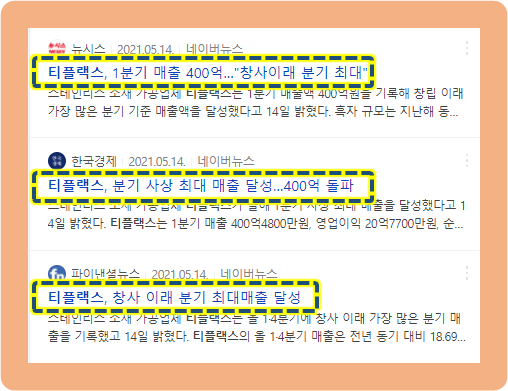 2021년 5월 14일, 티플랙스가 2021년도 1분기 매출액이 무려 400억원을 기록하면서 창립 이후 사상 최대 분기 매출액을 기록했다고 발표했습니다.