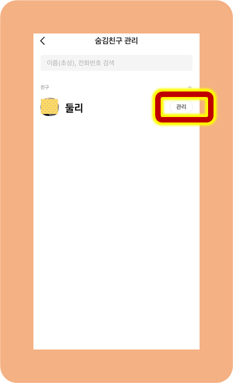 친구 이름 바로 오른쪽에 관리를 눌러주도록 할게요