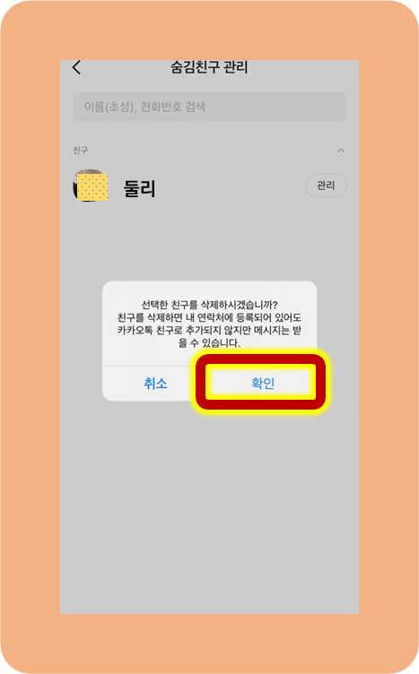 삭제하려는 친구를 숨김 완료 하셨죠?