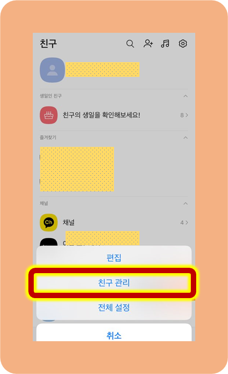 그리고 친구관리를 바로 눌러주도록 하시면 돼요
