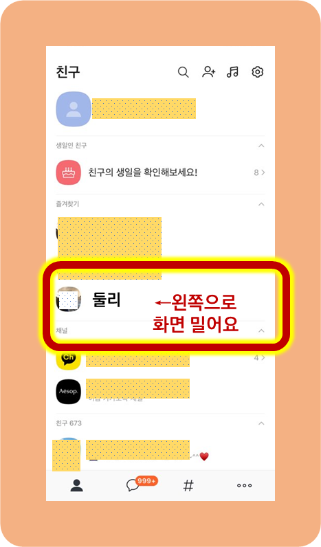 친구를 숨김으로 설정하는 방법은 다 비슷비슷합니다.