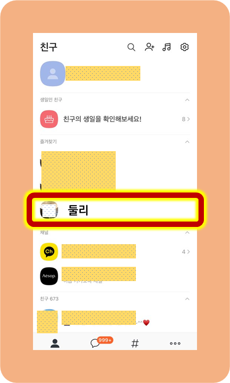 그럼, 이미 친구로 등록이 된 사람을 삭제하기 위해선 어떻게 해야 하는지 알아보도록 할게요