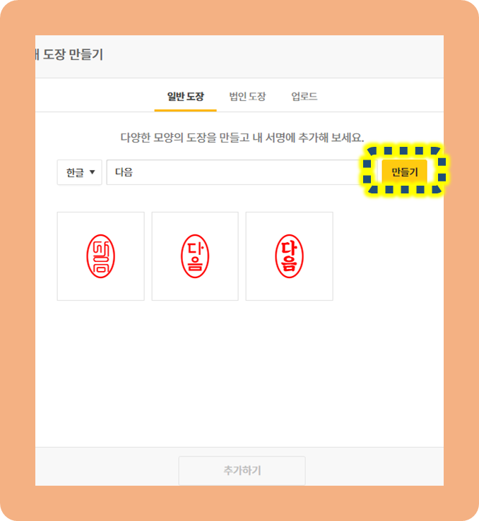 그 다음 도장 추가하기를 눌러주시면 돼요