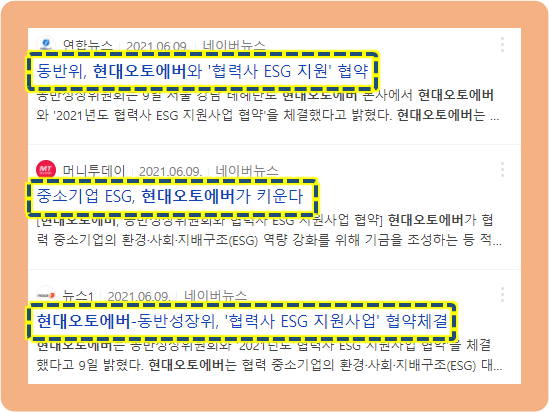2021년 6월 9일, 현대오토에버가 동반성장위원회와 함께 "2021년도 협력사 ESG 지원사업"에 관한 협약을 체결했습니다.