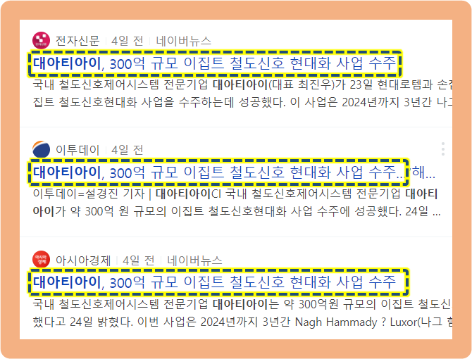 2021년 6월 23일, 대아티아이가 300억 규모의 이집트 철도신호현대화 사업을 수주했다는 소식을 발표했습니다.