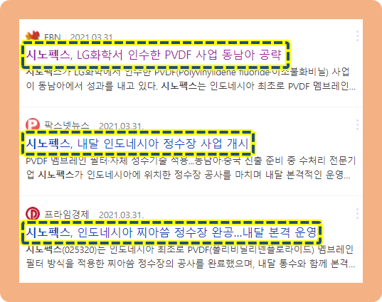 그리고 2021년 3월 31일, 시노펙스는 2021년 4월부터 PVDF 멤브레인 필터 방식을 적용시킨 찌아씀 정수장 사업을 개시한다고 발표했습니다.