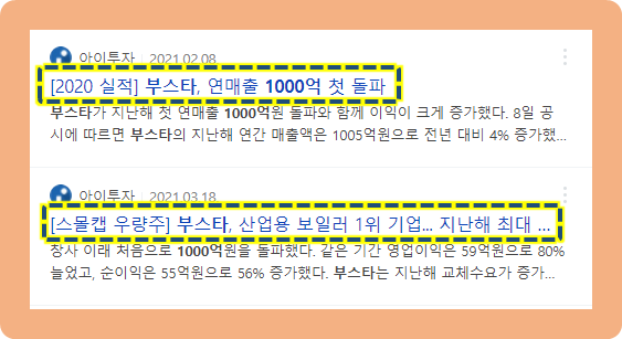 2021년 2월 8일, 부스타의 2020년도 연간 매출액이 사상 처음으로 1000억원을 돌파했다는 소식이 발표되었습니다.