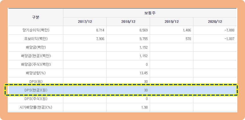 2017년, 2019년, 2020년에는 배당금을 지급하지 않았는데요.